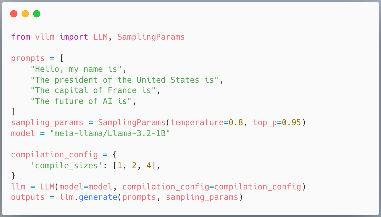 By default, vLLM compiles a single graph with a dynamic batch size that supports all possible batch sizes. This means one artifact can serve variable input sizes. However, specializing for known batch sizes—like 1, 2, or 4—can yield performance improvements.